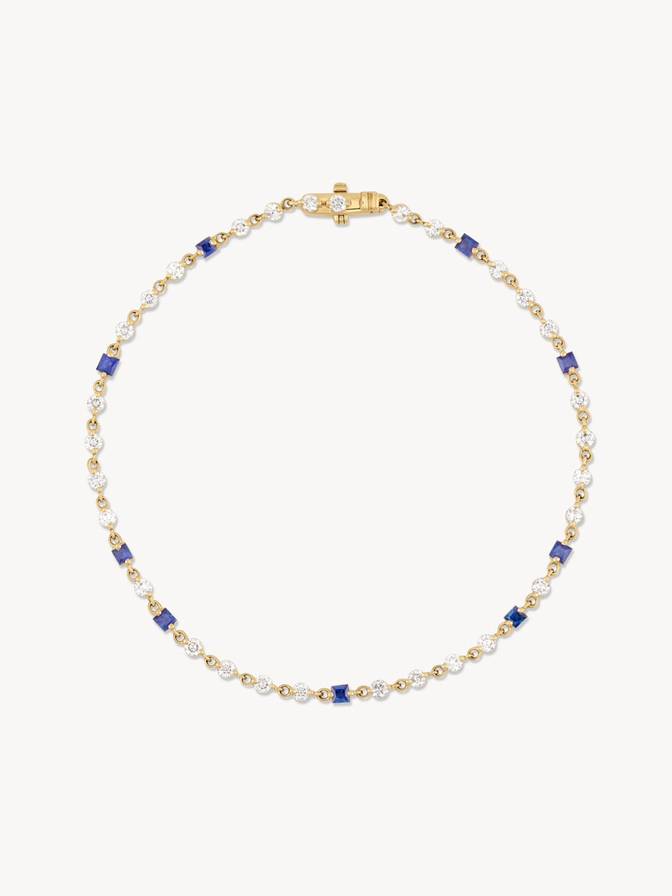 Add a pop of color! A continuous sparkling row of Diamonds come together with Princess Cut Blue Sapphires like a string of stars. This Unique-Yet-Timeless bracelet transforms every day to elegance while being beautiful on it's own, but also stunning when stacked with others!