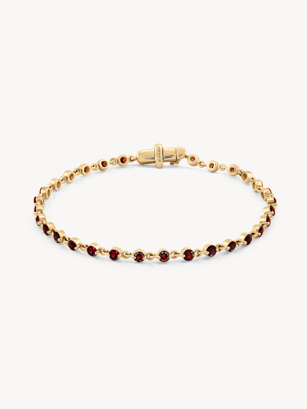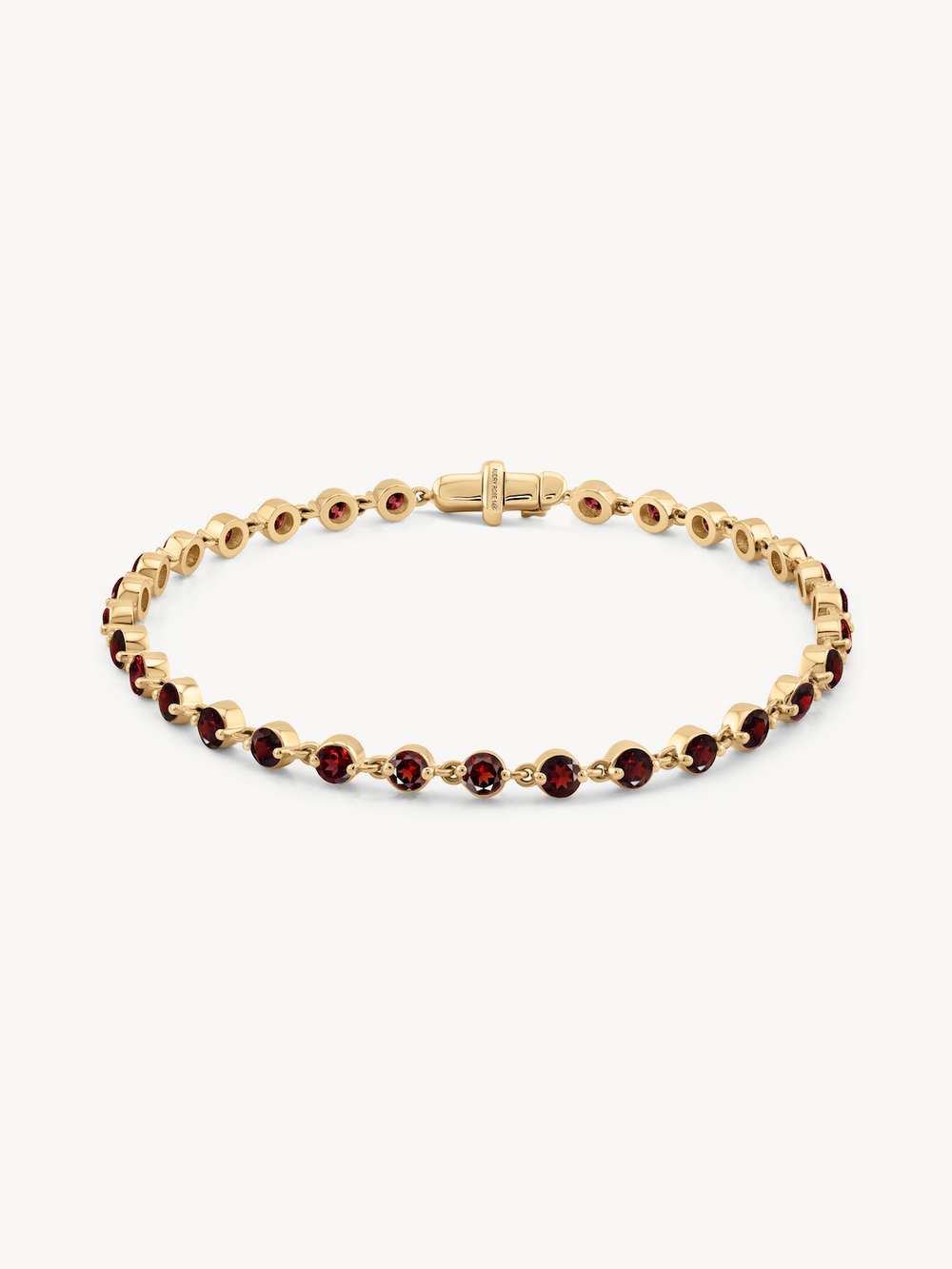 Rich, fiery, and a little mysterious. This bracelet is basically candlelight in jewelry form. Deep red garnets bezel-set in 14k gold bring warmth and intensity, the kind that makes you want to linger just a little longer. It’s equal parts sultry and sophisticated.