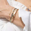 The Yellow Gold cuff of this bracelet is adorned with a polished White Gold ring that adds a touch of sophistication to the overall design. The two-toned metal combination creates a dynamic contrast that catches the light and draws the eye, making this bracelet the perfect accessory to complement any outfit.
