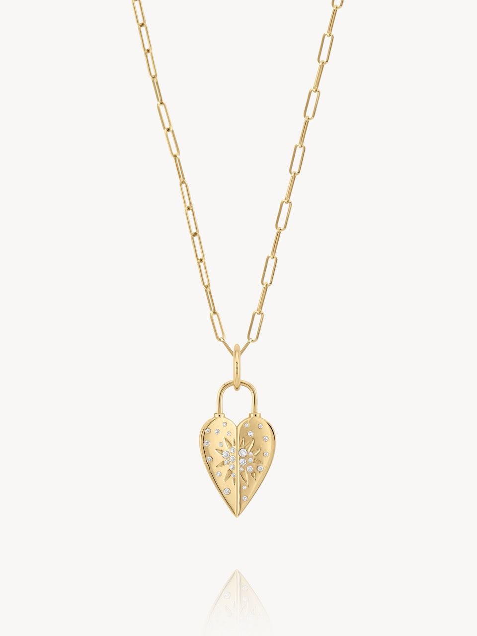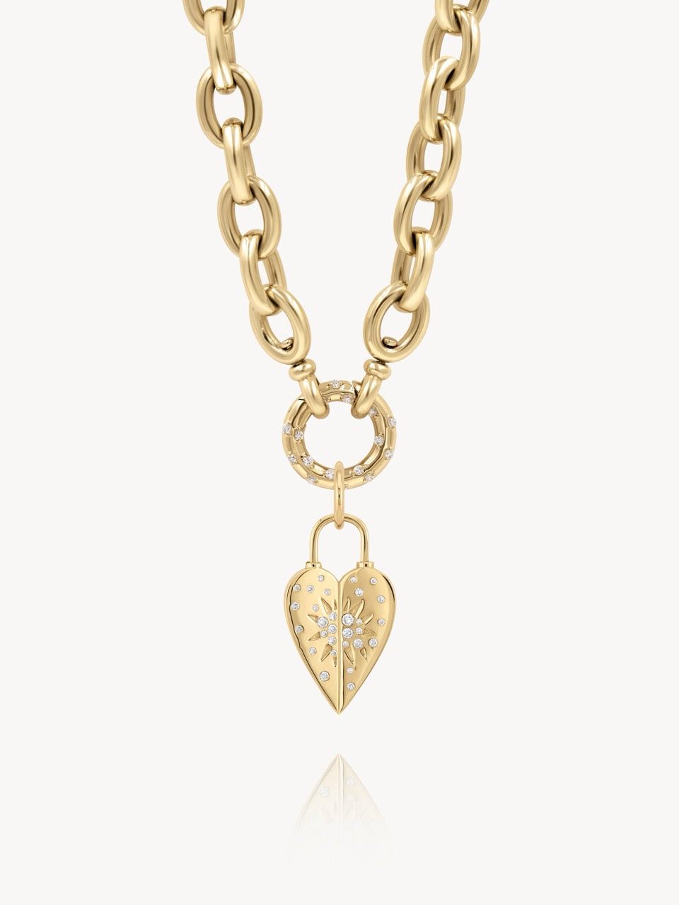 An instant favorite! This handmade 14k Yellow Gold pendant decorated with sparkling diamonds has an open lock style to be able to thread through your chain necklace or bracelet. Unlock your heart with this stunning piece.