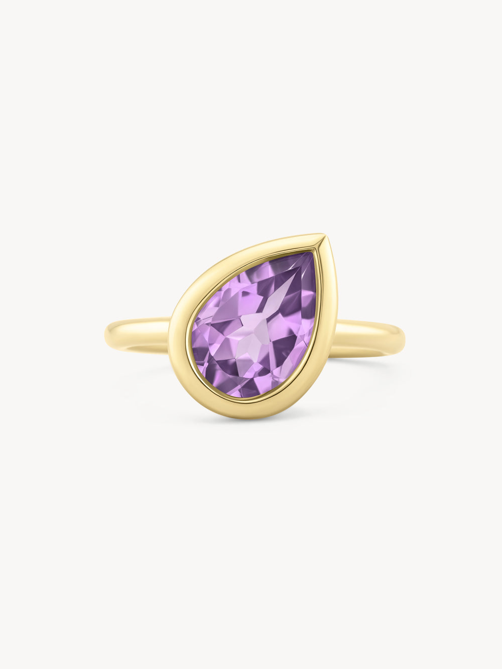 14K Yellow Gold Ring with Natural Pear-Cut Amethyst
