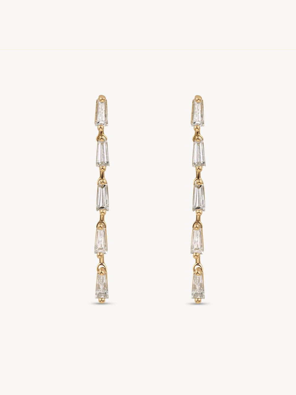 Glimmer and movement! Five brilliant Diamond baguettes are cut with a slight taper, swaying gently in the light and full of reflective magnetism. Unique, classic, timeless and just plain stunning.