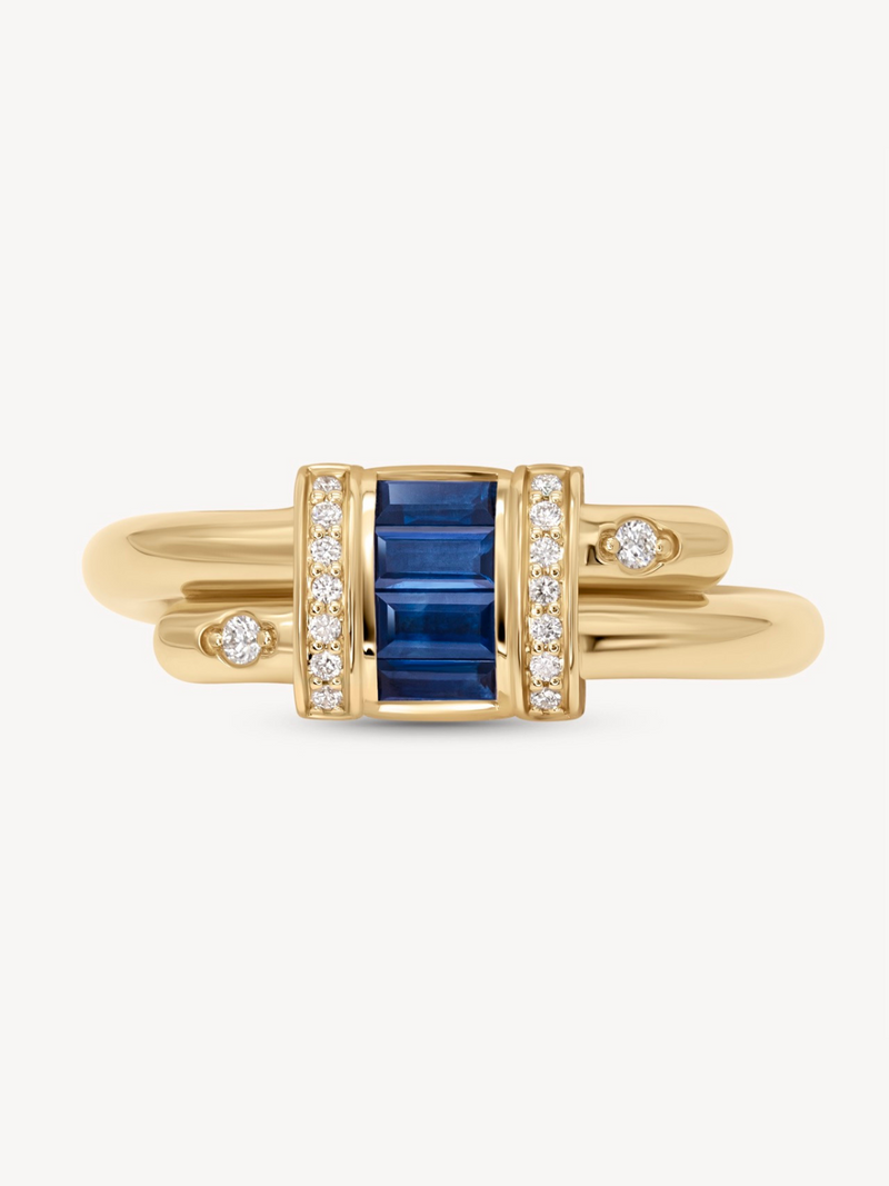 14k Yellow Gold Ring with Natural Blue Sapphires & White Diamonds.