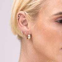 We started with the perfect dainty golden huggie silhouette and added our signature Starry Diamonds! Wear these twinkling beauties night or day, and add one or more of our exclusive Huggie Charms to dial up the intrigue.