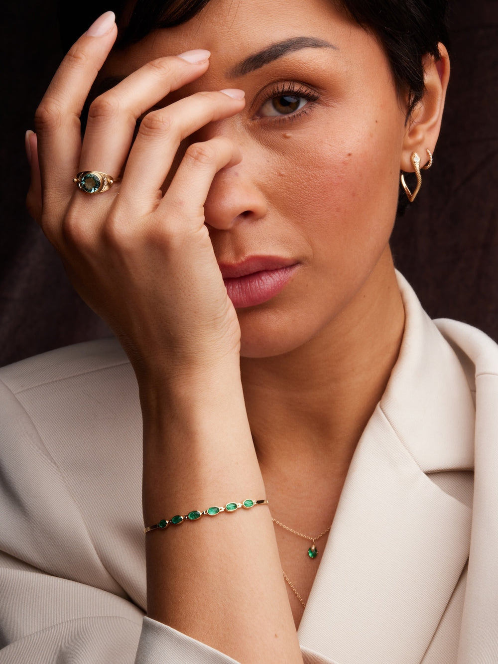 This collection is inspired by ancient egyptian culture and its natural and rich symbols. The snake represents reincarnation, immortality, and purity.