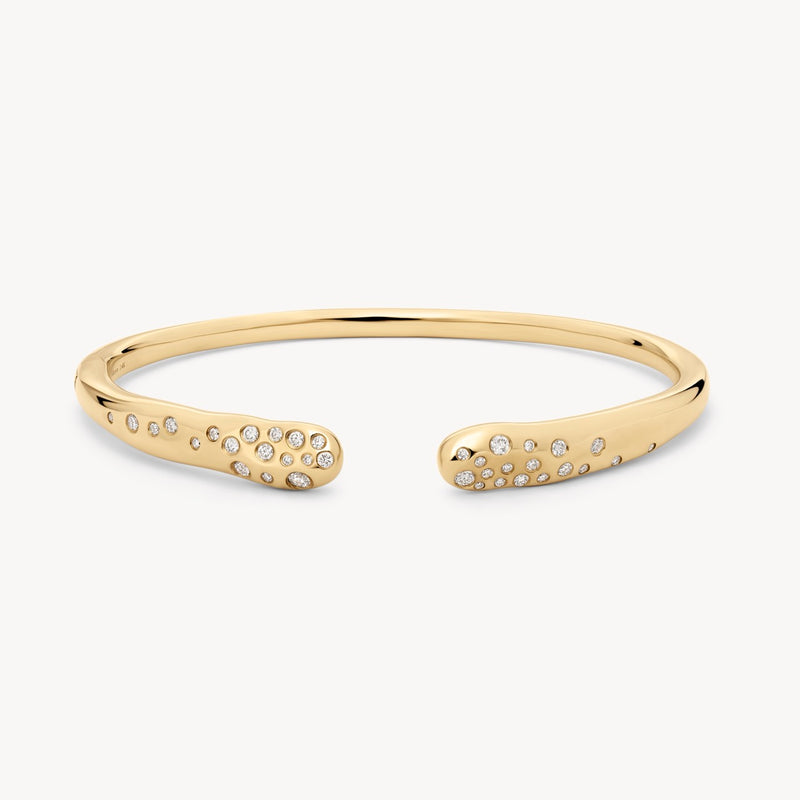 Brilliant-cut white diamonds are set in organic, yet refined forms, capturing a balance of raw beauty and timeless elegance.