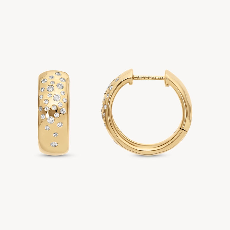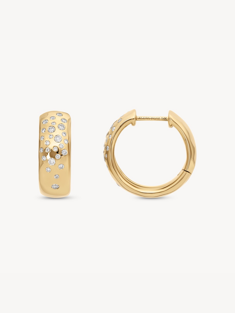 14k Yellow Gold Earrings with Natural Brilliant Cut White Diamonds.