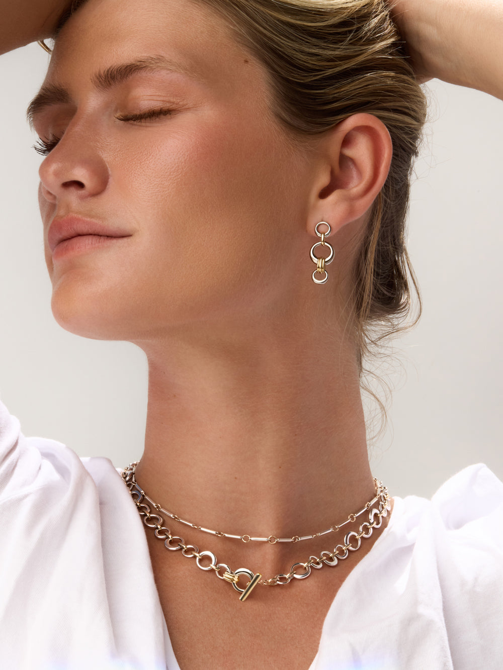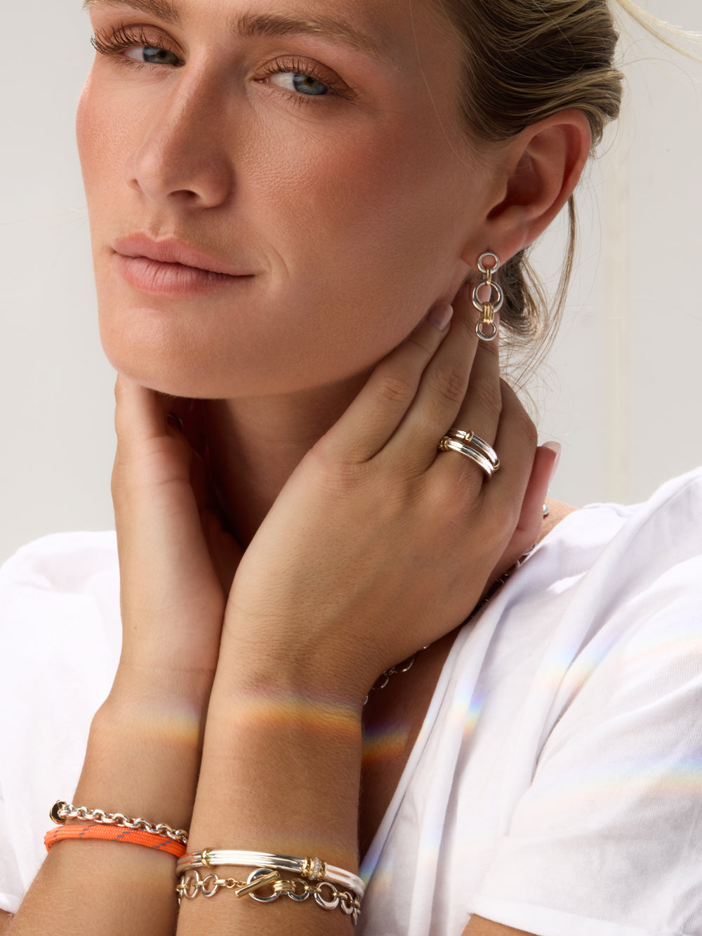 This collection started with a single link. I loved the symbolism of connection, how one moment leads to the next, one person links to another, one version of ourselves evolves into something new. From there, it grew into something bigger: a series of pieces that feel strong, sculptural, and quietly sentimental.