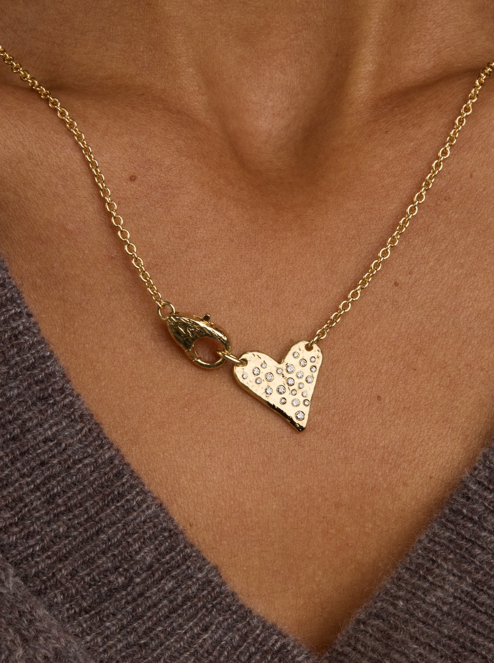 This necklace brings a flirty, more playful side to the lock collection. A diamond-accented heart connects directly to a hand-carved gold lock, pairing softness with sculptural gold. Worn alone, it sits perfectly at the collarbone and catches the light without feeling overdone. It layers easily with chains or stands on its own as a small statement with a little attitude.