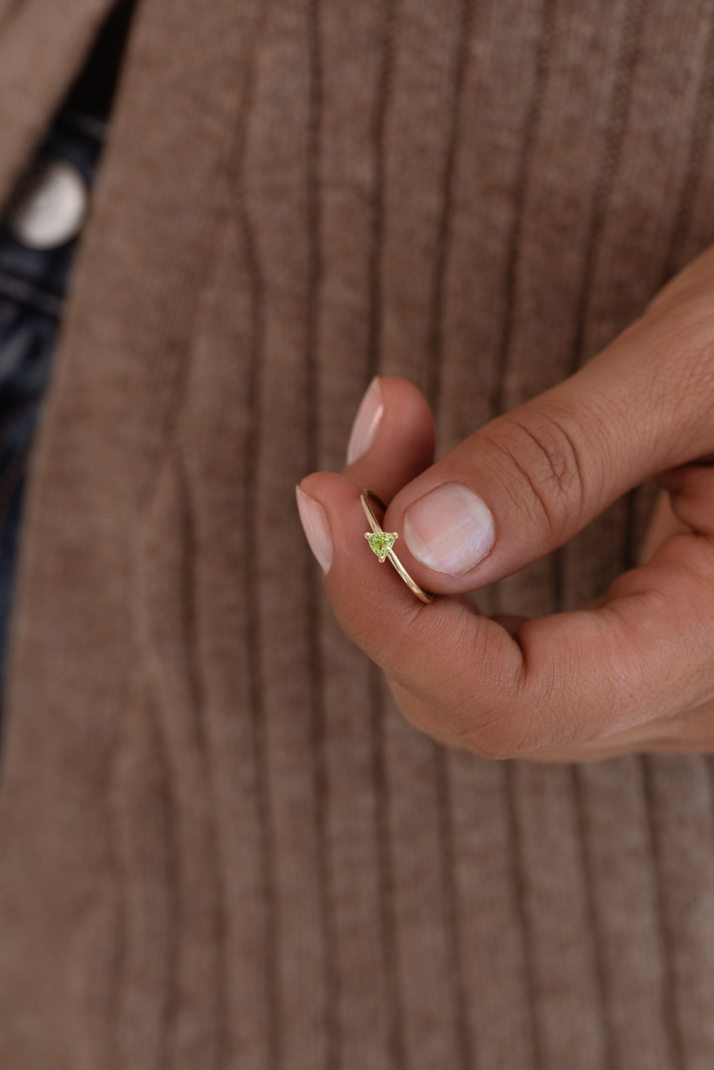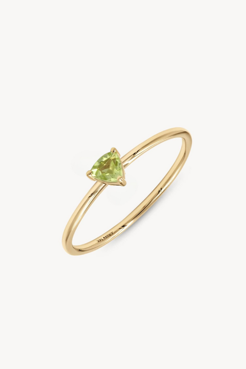 This birthstone ring features a vibrant Peridot, the gem of August, believed to symbolize prosperity, good luck, and positive energy. This Unique-Yet-Timeless piece will become your best loved everyday ring, and is the perfect piece to pass down through the generations.