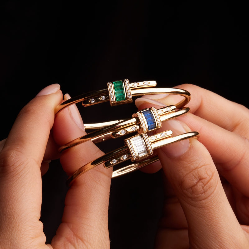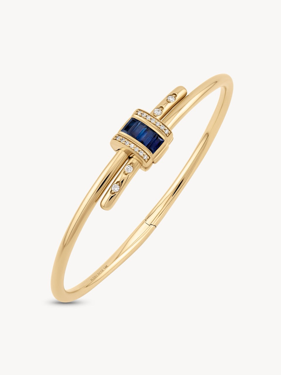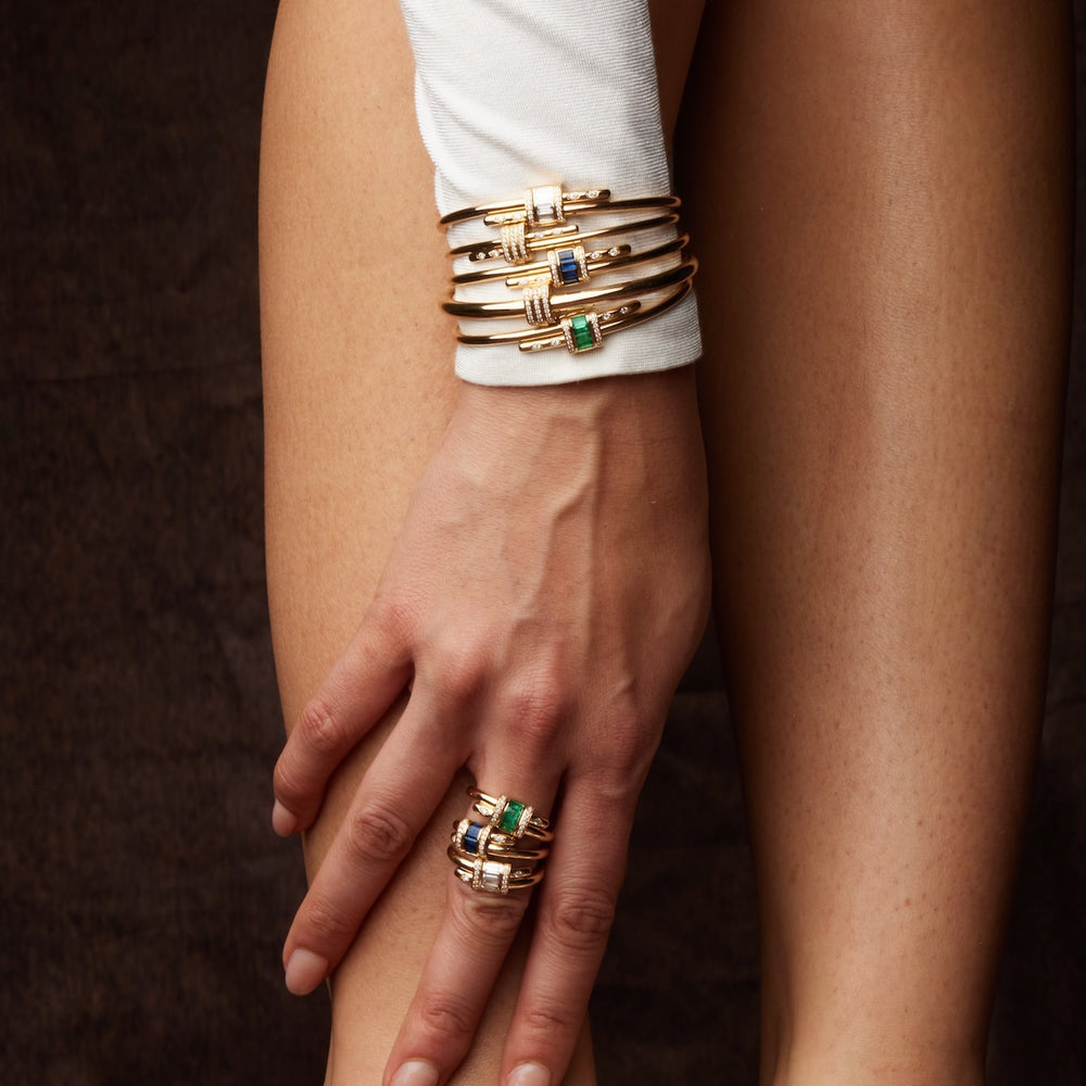An elevated evolution of our signature latch design, the Vaulted Latch features a bold, sculptural silhouette. The secured hidden mechanism makes it seamless to wear, and secure by design. A row of center-set baguette stones adds a refined edge, making this piece as collectible as it is effortless.
