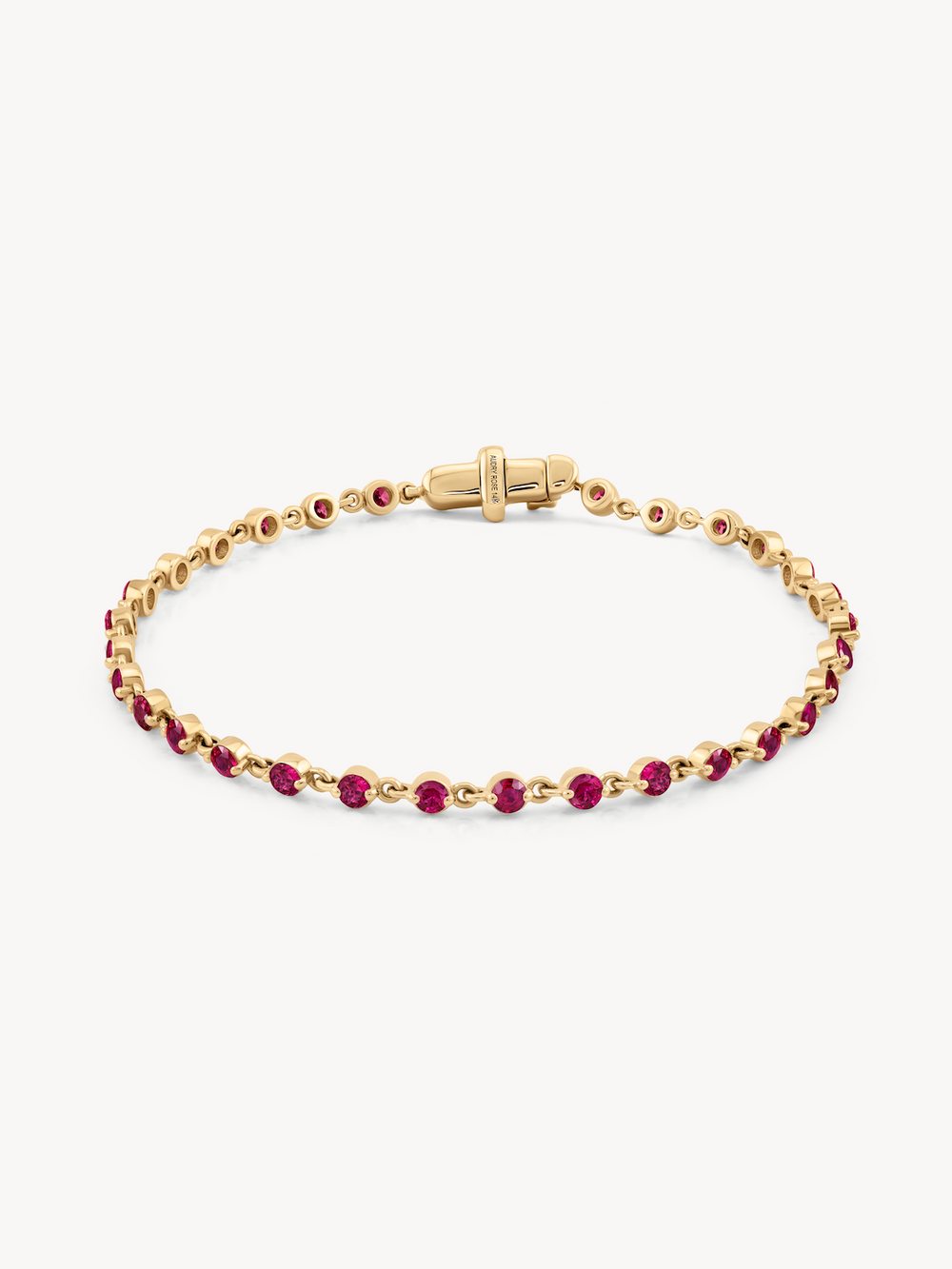 We had intended to release this stunning bracelet a long time ago for July birthdays, but the rubies used just weren't up to our standards. As we wouldn’t settle for anything less than perfection, Jaclyn personally hand-picked each ruby to ensure this bracelet is as perfect as it should be. The result is a radiant row of rubies, meticulously arranged and completed with a lobster clasp, embodying the elegance and quality you deserve.