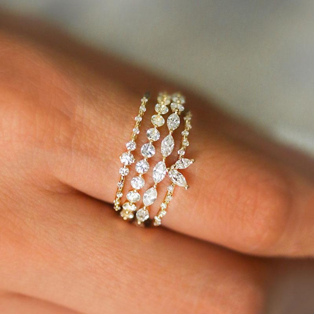 Three‚Diamond‚rings in one! An eternity band featuring a brilliant‚display of round Diamonds on one side, and marquise Diamonds on the other. The stacking opportunities are endless. What shape of sparkle are you in the mood for today?