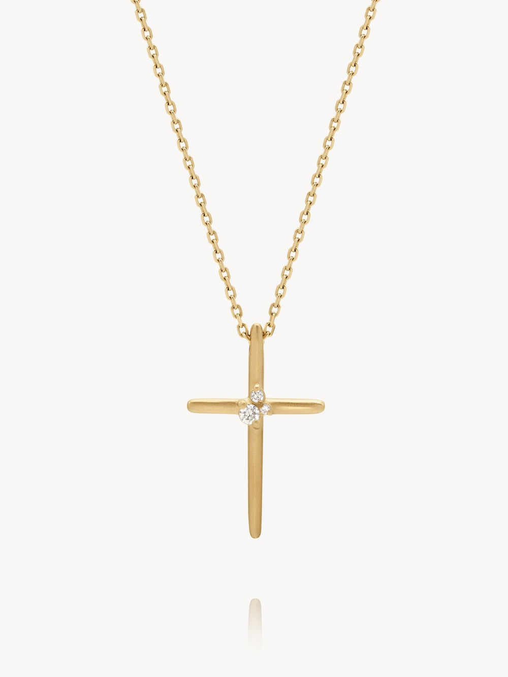 14k Matte Yellow Gold Necklace with Natural Brilliant Cut White Diamonds.