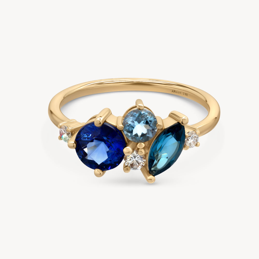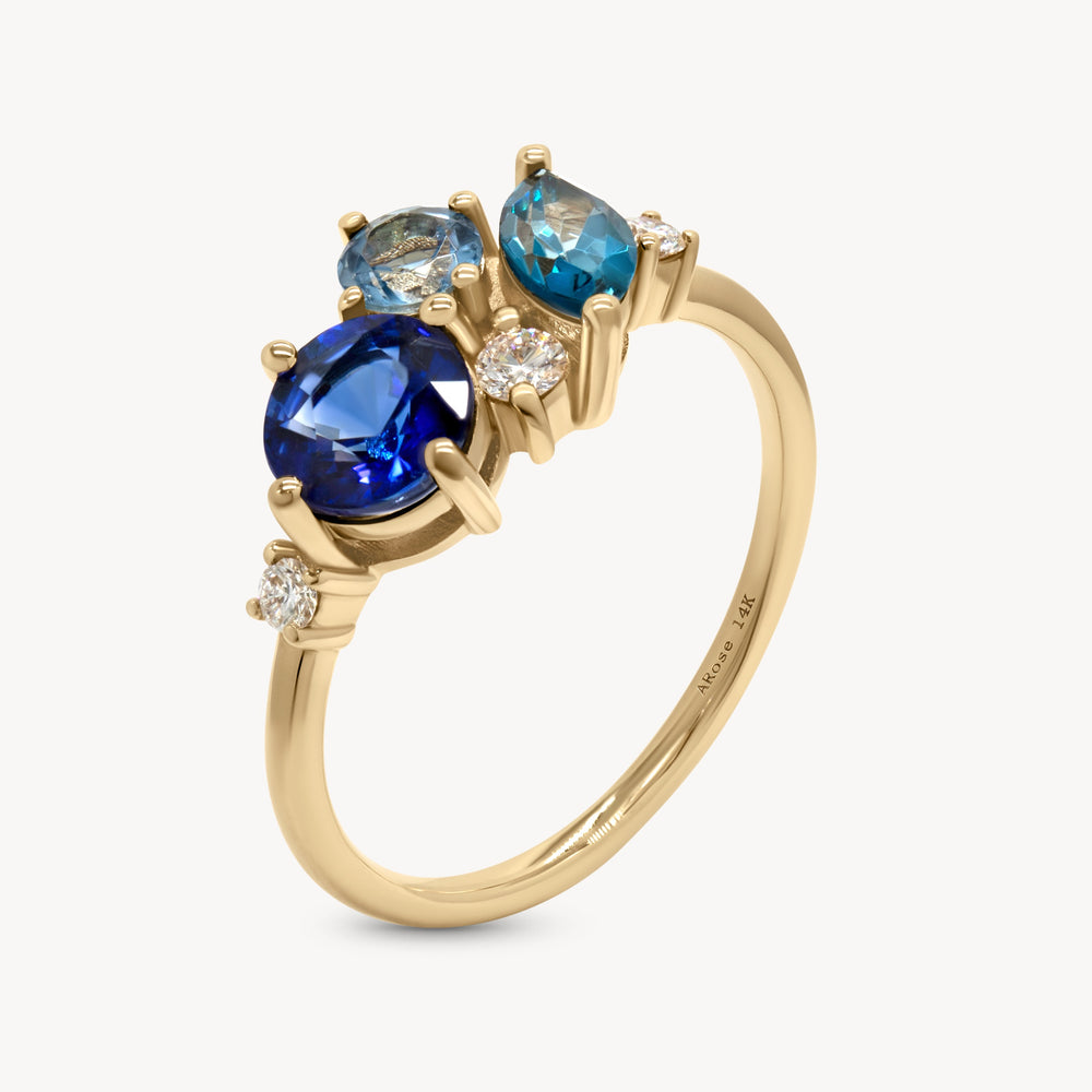 14k Yellow Gold Ring with Natural Sapphire, Topaz, Aquamarine, and Diamonds.