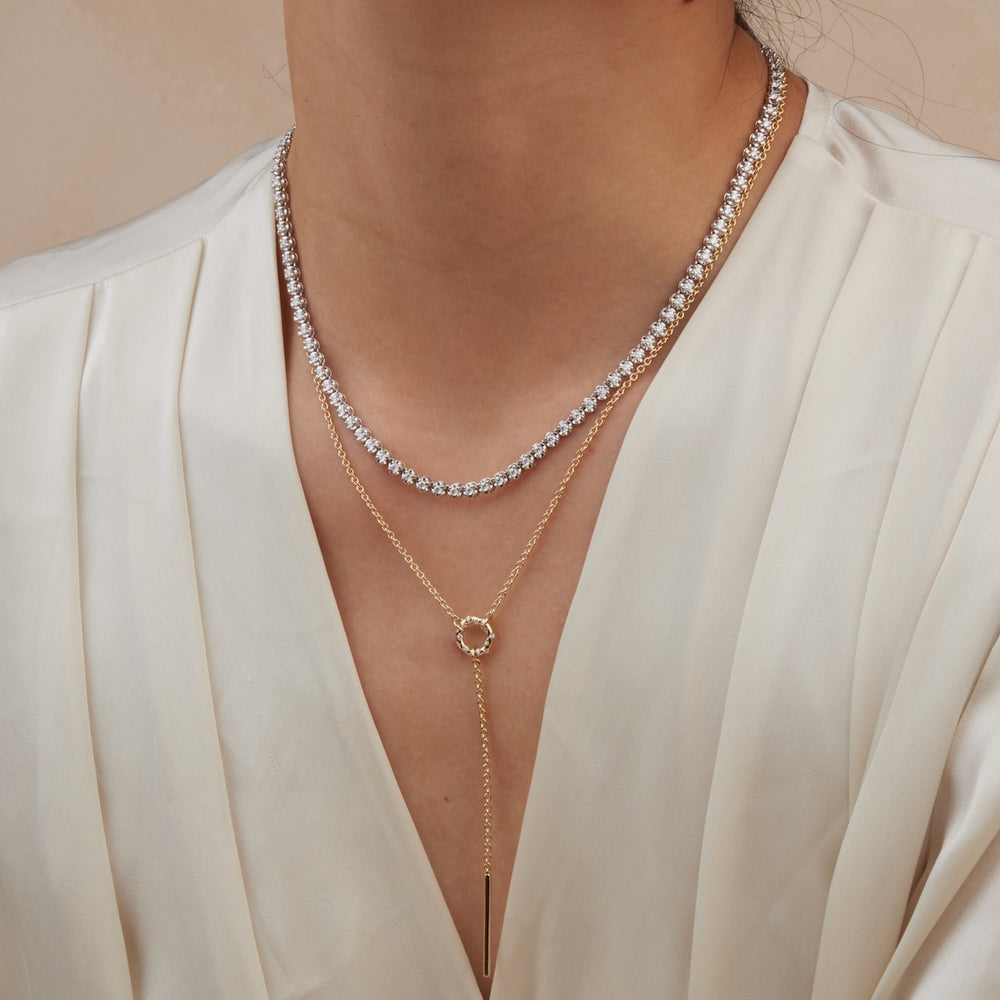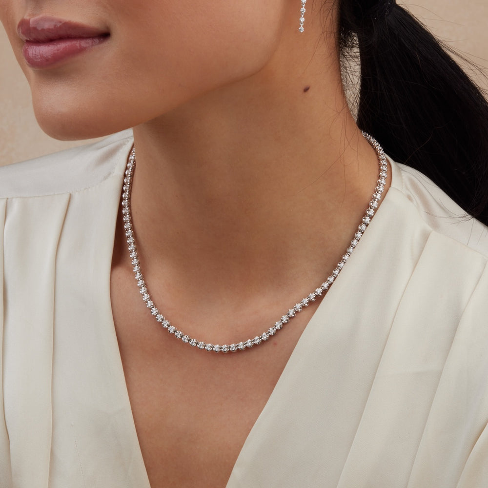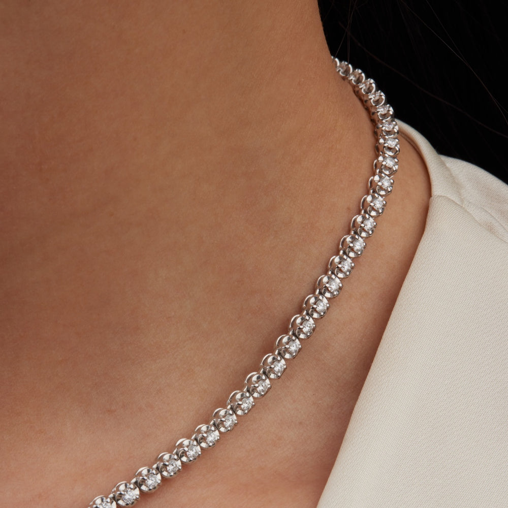 14k White Gold Necklace with 1.5mm Natural Diamonds.