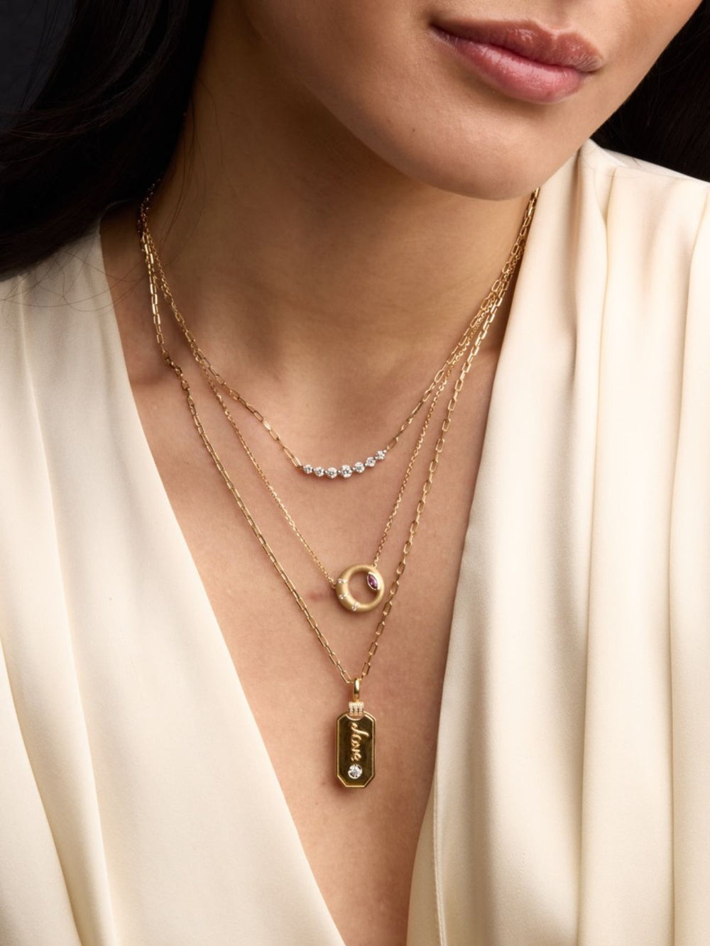 Our Love Tag Pendant is a simple reminder to carry love with you wherever you go. The word Love is embossed across the gold tag, creating a raised detail that feels both personal and intentional. It’s a small symbol of the love we give, the love we receive, and the love that follows us through every season of life.