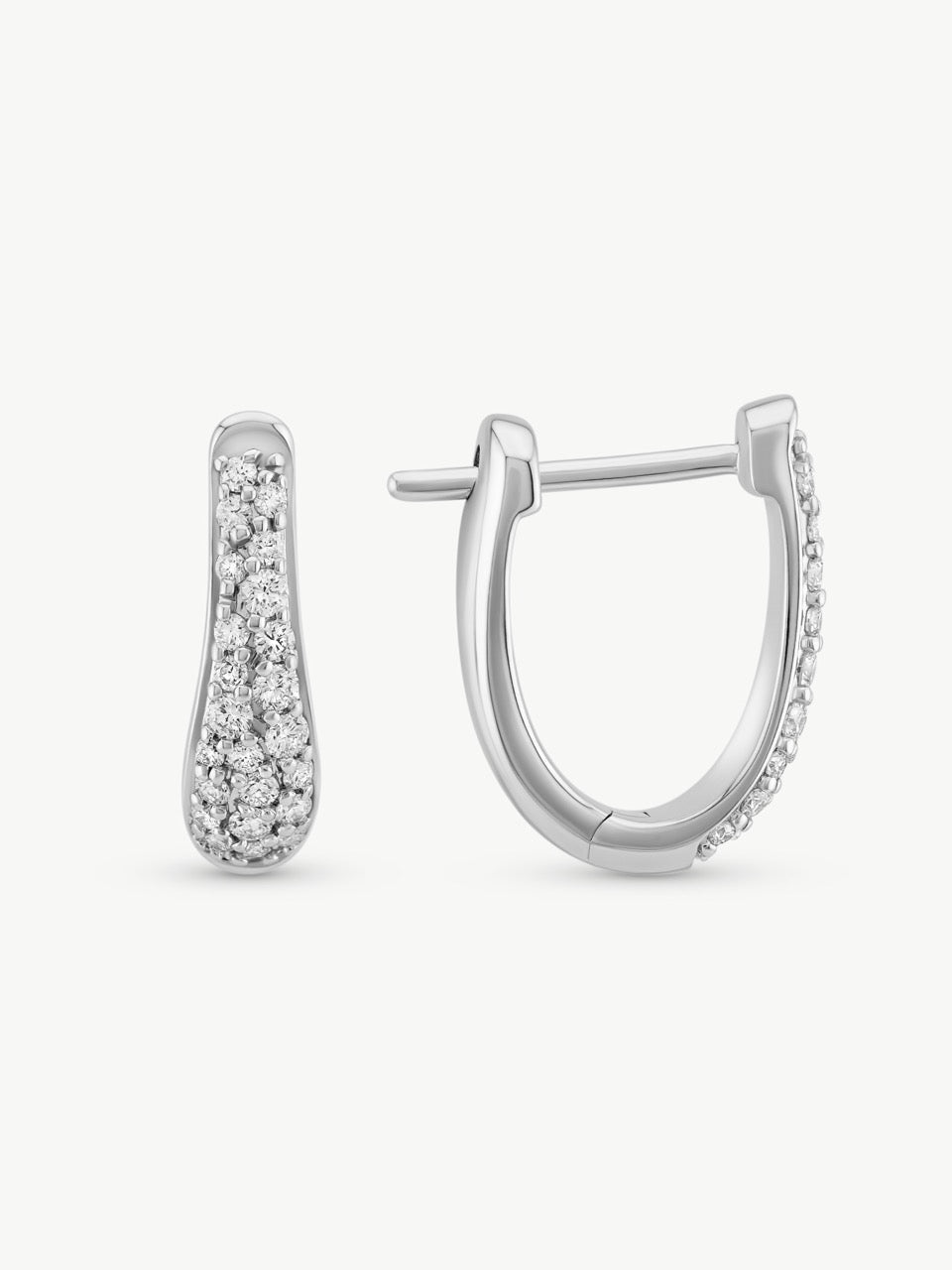 The wrap-inspired design allows the varying sizes of natural diamonds to create soft dimension and gentle movement as they catch the light from different angles. The tapered shape adds a refined sense of flow while maintaining the clean, polished look that makes huggies a timeless staple.